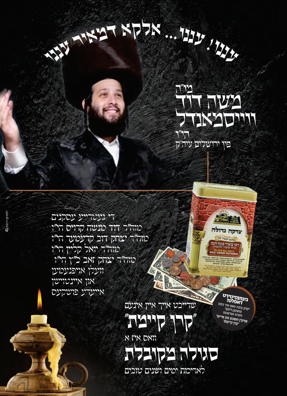 PHOTO CREDIT: JDN יסנאמב סנה לעב ריאמ יבר תקדצל םילשורי תבח ללוכ תבוטל רעניד ן”בדח יסנאמ בובאב ץ”מוד ג”הרה - יסנאמ ןיא אזלעב ק”ק יבושחו ינקזמ ל”ז ןראקרעפעפ רזעלא םהרבא ’ר ח”הרה נ”על - אזאלפ םוירטא ןיא הריש ק”שצומ רדהו ראפ בורב ןעמוקעגראפ רוביצ םעד טריסערדא ללוכה תלהנה רבח ןוא ב”ב אזלעב תודסומ להנמ שיירב ןבואר ברה – ”הרותל דובכ ונת-םילשורי תבח סרפ“ טימ ןראוועג רטעתנ בובאבמ ר”ומדאה ללוכה אישנ 296 The Monsey View