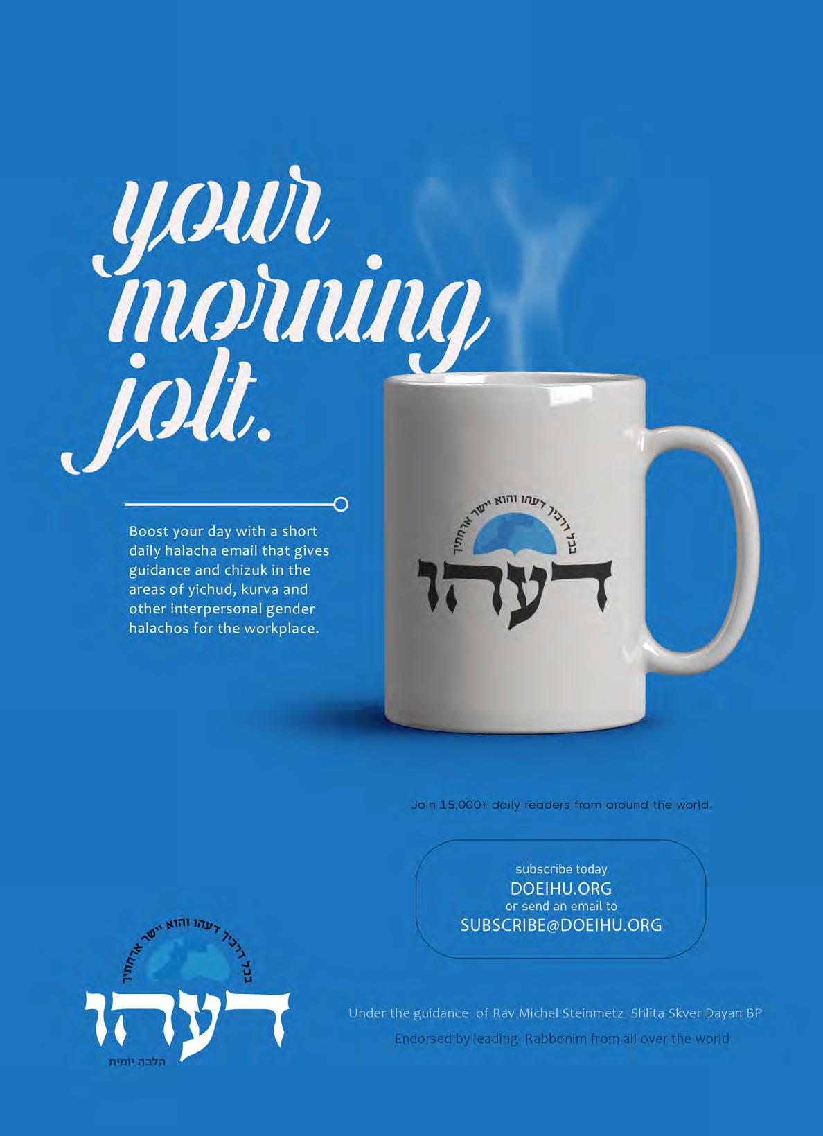 Now Rav Wosner fulfilled that directive, repeating the vort so another choleh could gain chizuk. “You see, you do have a tafkid in this world — one of the most elevated accomplishments possible: to create a place for the Shechinah to rest!”