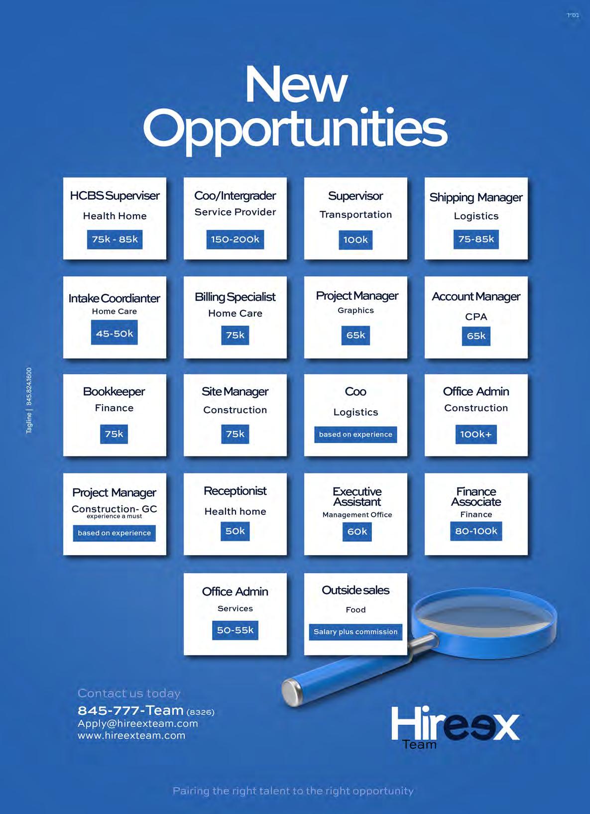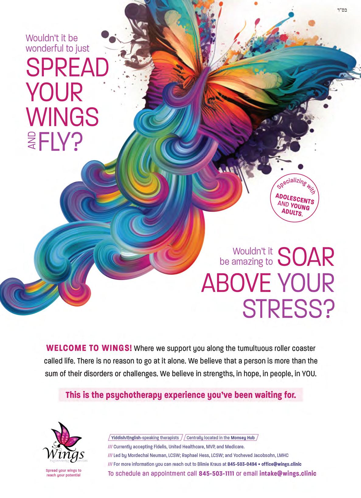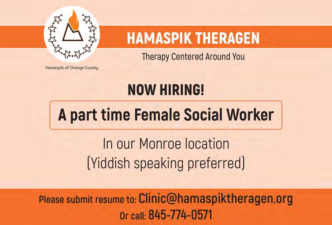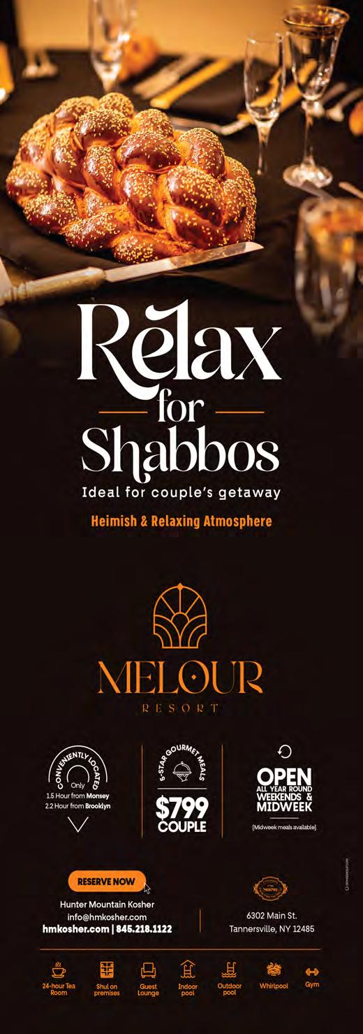MONSEY, NY WEATHER FORECAST THURSDAY 40°/33° 59% FRIDAY 36°/18° 1% MONDAY 37°/21° 25% SHABBOS 32°/27° 5% TUESDAY 39°/16° 60% SUNDAY 44°/23° 25% WEDNESDAY 36°/20° 55% The Everest Equity Company, Inc. Registered Mortgage Broker New York State Department of Financial Services. Mortgage Broker Licensed by the New Jersey Department of Banking and Insurance. Licensed Mortgage Broker CT, PA, FL and NC Banking Departments. Loans arranged through third party providers. Company NMLS ID 12484 8 4 5 3 5 7 6 9 0 0 • n f o @ e v e r e s t e q u t y c o m • e v e r e s t e q u t y c o m 2 E X E C U T V E B L V D S U T E 2 0 1 • S U F F E R N , N Y 1 0 9 0 1 162 www.themonseyview.com 845.600.8484 The Monsey View February 22, 2023