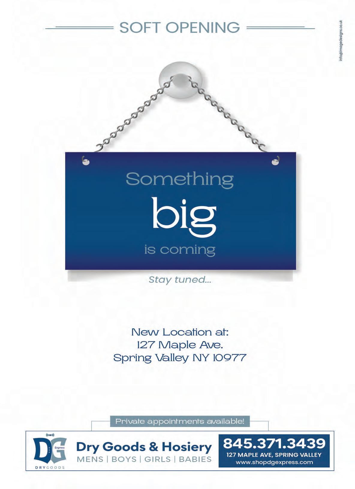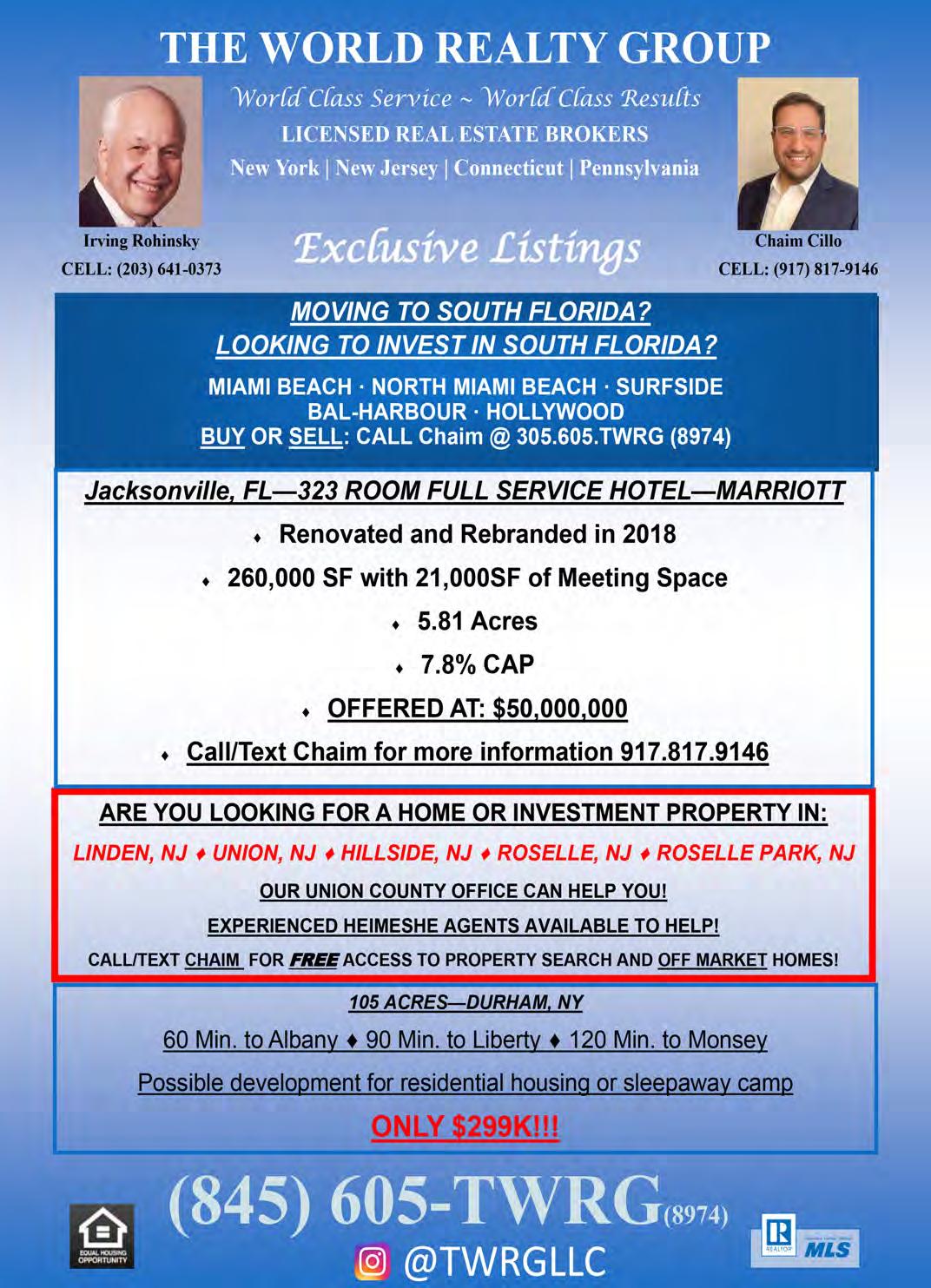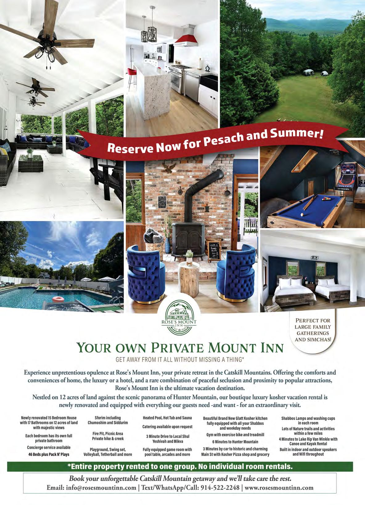 MONSEY, NY WEATHER FORECAST THURSDAY 40°/33° 59% FRIDAY 36°/18° 1% MONDAY 37°/21° 25% SHABBOS 32°/27° 5% TUESDAY 39°/16° 60% SUNDAY 44°/23° 25% WEDNESDAY 36°/20° 55% The Everest Equity Company, Inc. Registered Mortgage Broker New York State Department of Financial Services. Mortgage Broker Licensed by the New Jersey Department of Banking and Insurance. Licensed Mortgage Broker CT, PA, FL and NC Banking Departments. Loans arranged through third party providers. Company NMLS ID 12484 8 4 5 3 5 7 6 9 0 0 • n f o @ e v e r e s t e q u t y c o m • e v e r e s t e q u t y c o m 2 E X E C U T V E B L V D S U T E 2 0 1 • S U F F E R N , N Y 1 0 9 0 1 162 www.themonseyview.com 845.600.8484 The Monsey View February 22, 2023
