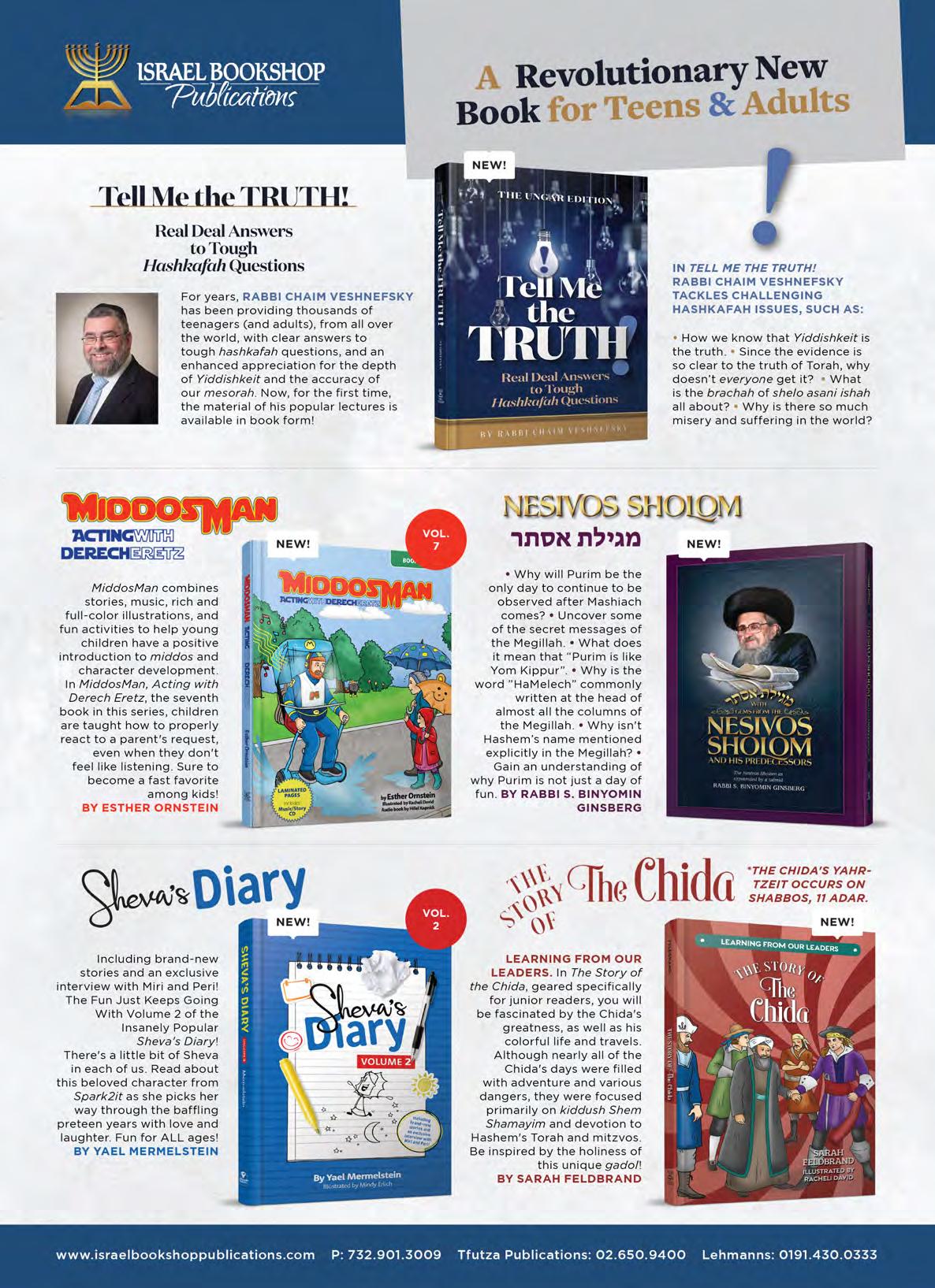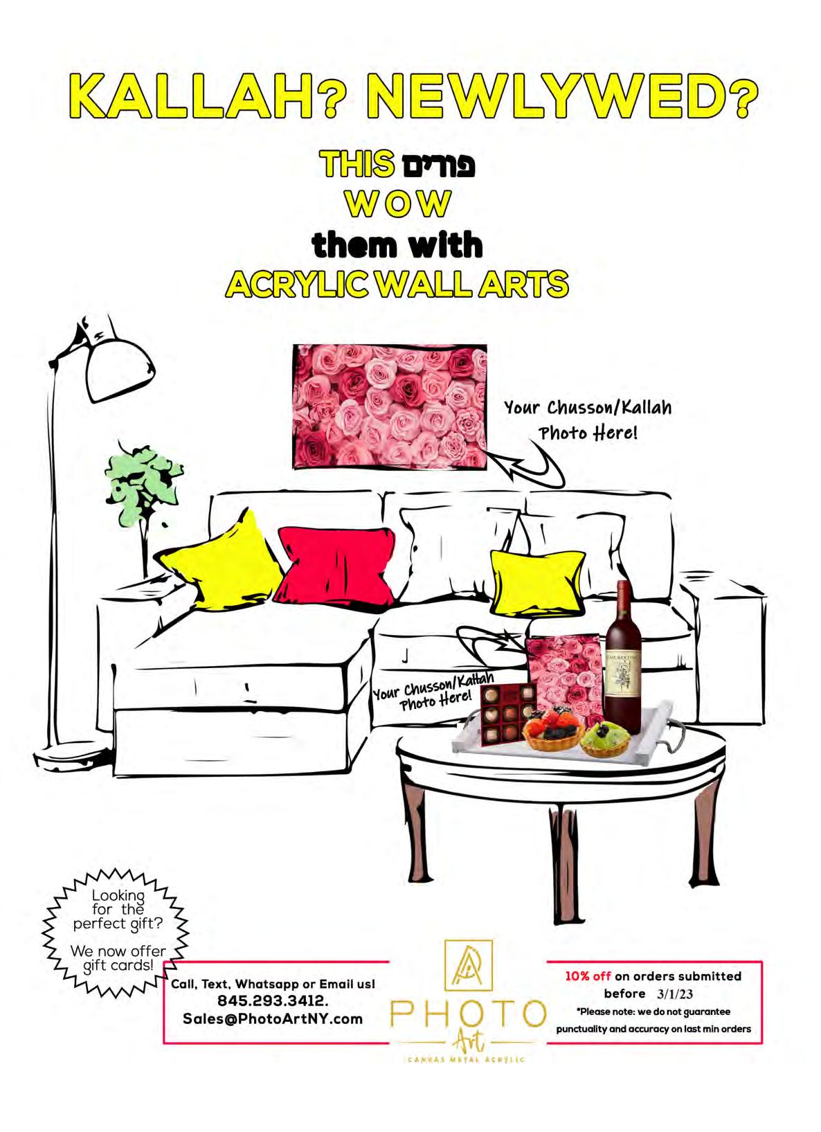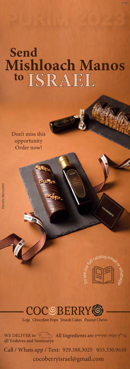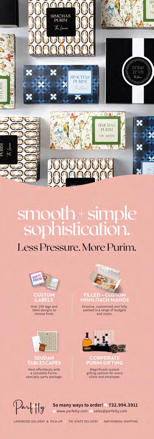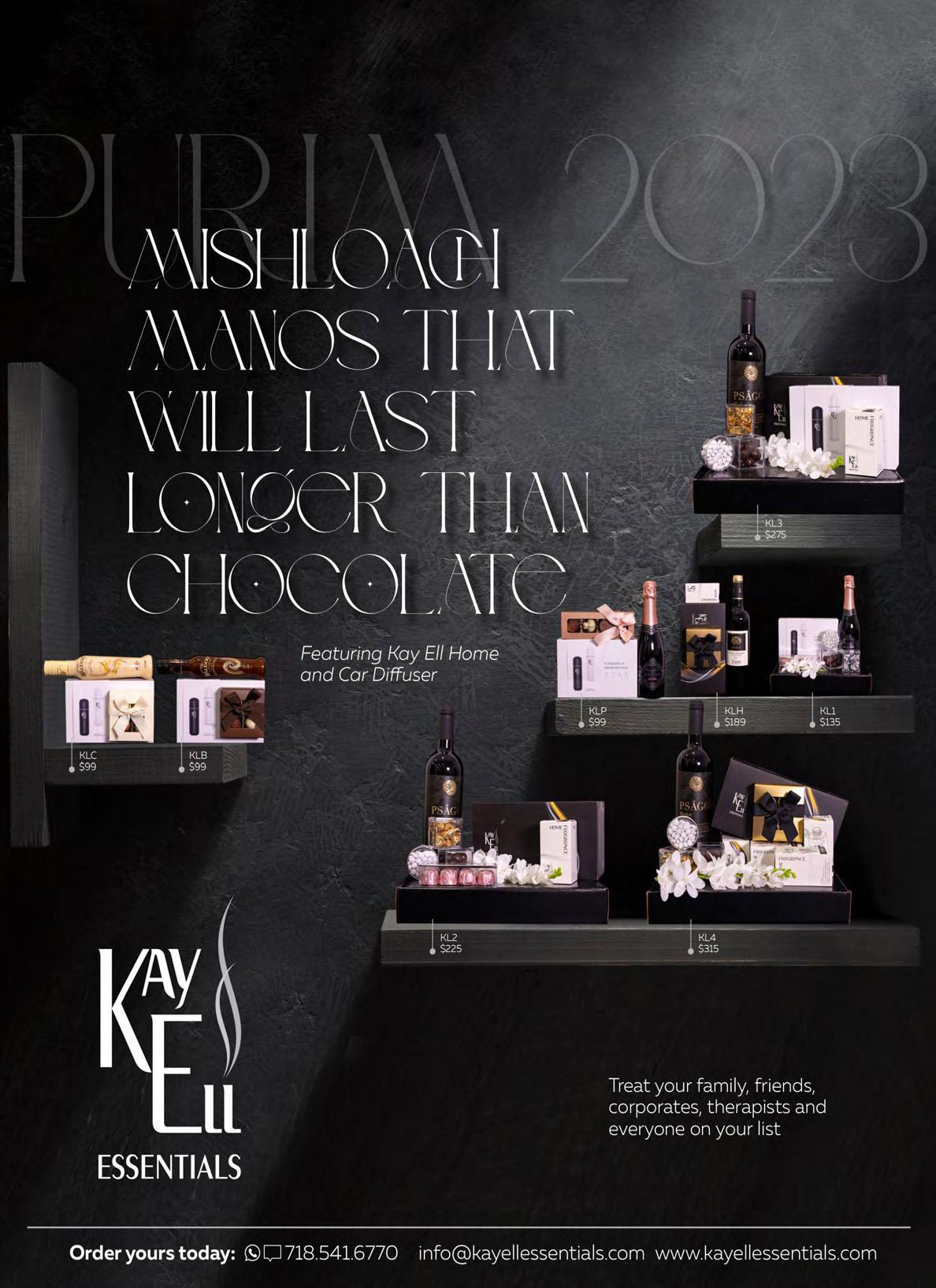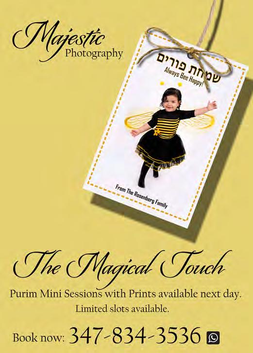 FREE ISSUE 387 FEBRUARY 22, 2023 המורת תשרפ ג”פשת רדא ’א DRIVE IN DISGUISE Because your car deserves to dress up too! Enter for a chance to win! WRAP IT WITH WORDS Mishloach manos that speak for themselves THE ART OF THE TRANSFORMATION A conversation with makeup artist Moshe Grunfeld PURIM ON WHEELS Exploring the party bus A MEGILLAH SELECTION Themes sourced from the Purim Story FYI: CHAUFFEURS STREETS FULL OF SPIRIT 24-PAGE, FULL COLOR PURIM INSERT INCLUDED