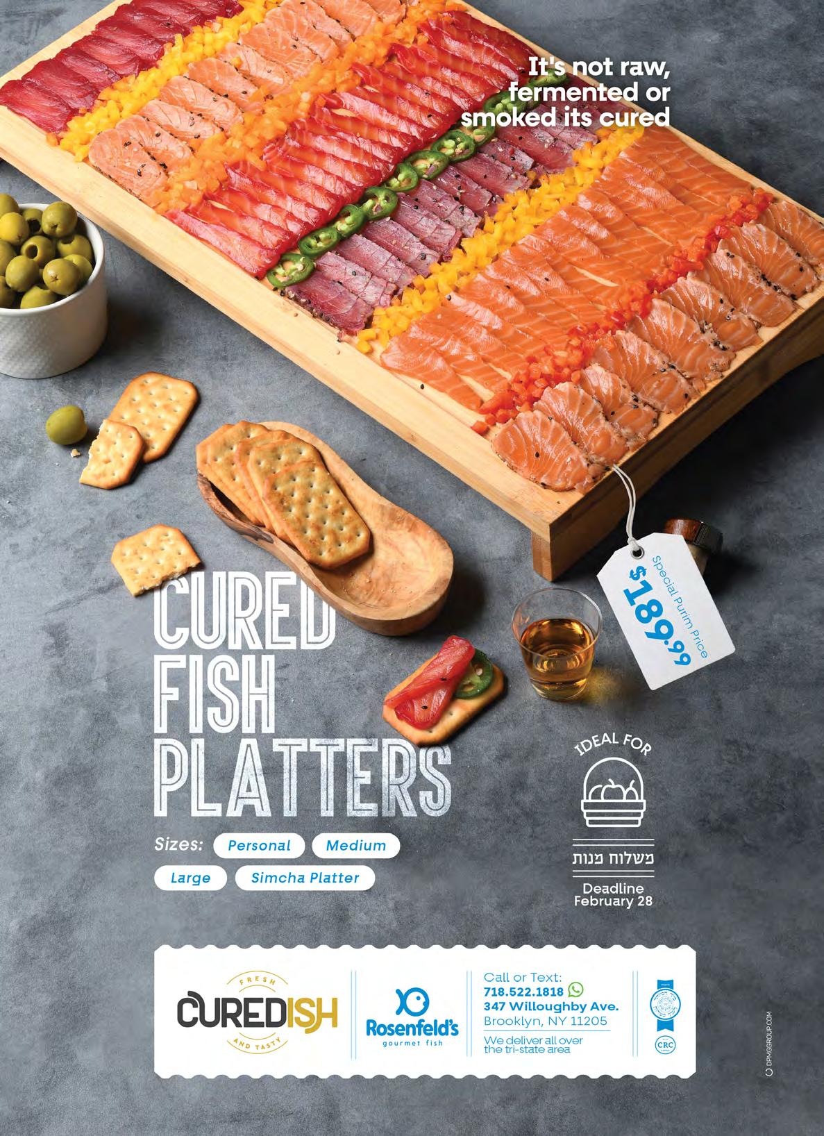 Thank you for a wonderful publication. I enjoy your articles, and the piece on curing fish was no exception. One thing bothered me, though. The article describes simcha platters of expensive cured fish as if they are de rigueur, and one cannot have a simcha without them.