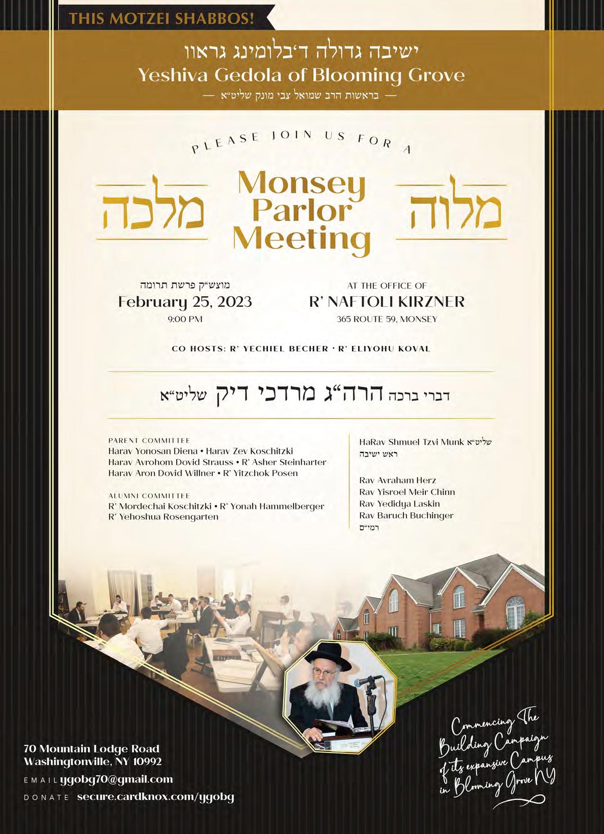 PHOTO CREDIT: JDN ק”הראב רוקיבו ןיליופ ןישטנח ריעב ןשיה ד”מהבב הלפתב ןישטנח ד”בא ליהעווזמ ם”ירומדאה תושארב ע”יז ליהעווזמ יכדרמ יבר ק”הרה תלוליה דאווקיעל ןיא ’רעטנעצ םיפכ‘ עיינ יד ראפ הזוזמ תעיבק 324 The Monsey View