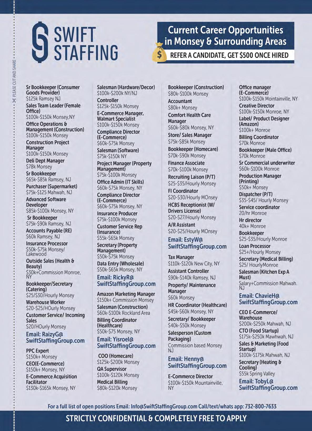MAIL: The Monsey View, POB 305, Monsey, NY 10952