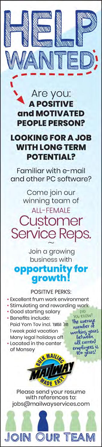 60 www.themonseyview.com 845.600.8484 The Monsey View February 22, 2023