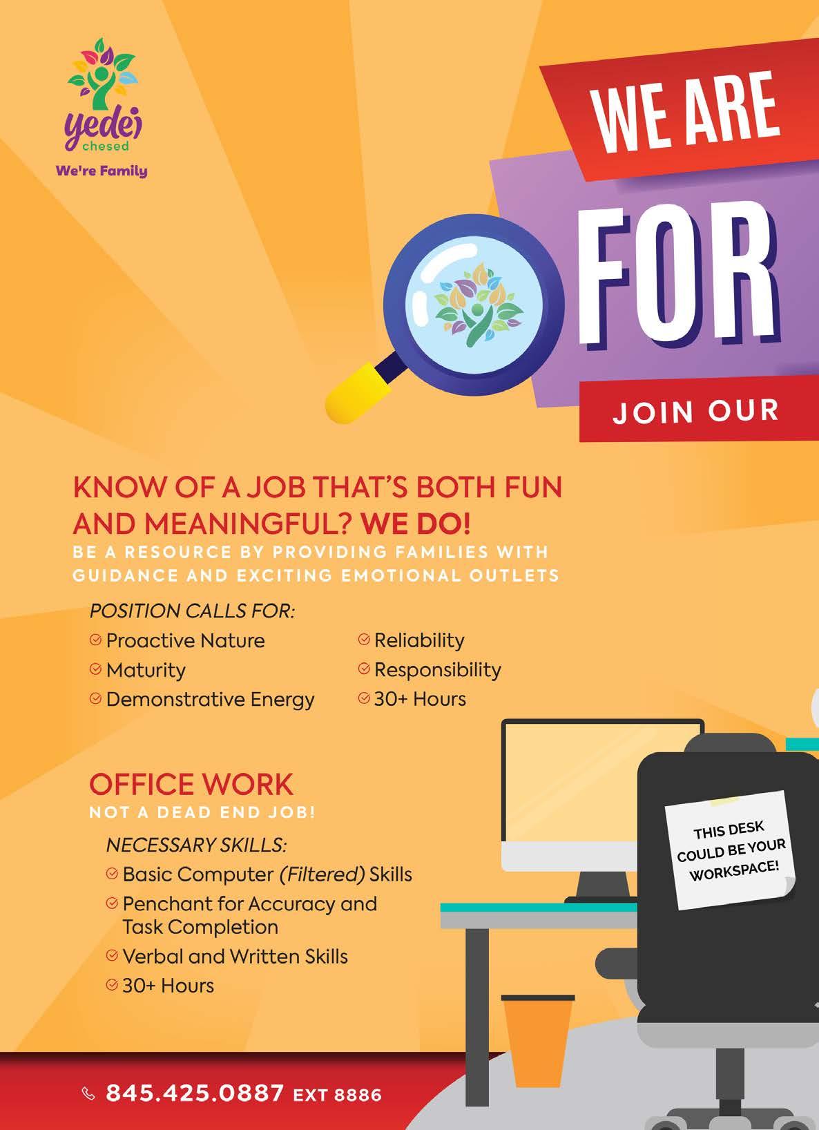 Secretary with lots of experience in computer and Graphics, available from After Pessach. call 845-4994876