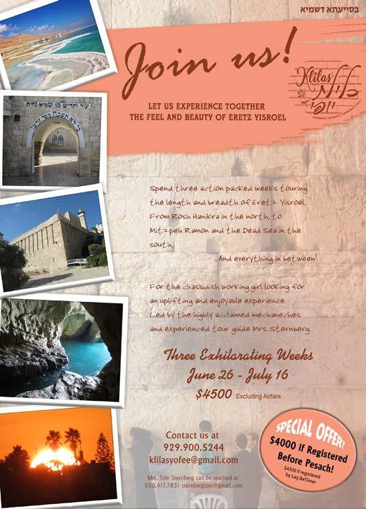 MONSEY, NY WEATHER FORECAST THURSDAY 47°/30° 0% FRIDAY 53°/49° 55% MONDAY 51°/40° 25% SHABBOS 67°/40° 62% TUESDAY 57°/37° 25% SUNDAY 51°/36° 21% WEDNESDAY 53°/38° 60% The Everest Equity Company, Inc. Registered Mortgage Broker New York State Department of Financial Services. Mortgage Broker Licensed by the New Jersey Department of Banking and Insurance. Licensed Mortgage Broker CT, PA, FL and NC Banking Departments. Loans arranged through third party providers. Company NMLS ID 12484 8 4 5 3 5 7 6 9 0 0 • n f o @ e v e r e s t e q u t y c o m • e v e r e s t e q u t y c o m 2 E X E C U T V E B L V D S U T E 2 0 1 • S U F F E R N , N Y 1 0 9 0 1 166 www.themonseyview.com 845.600.8484 The Monsey View March 29, 2023