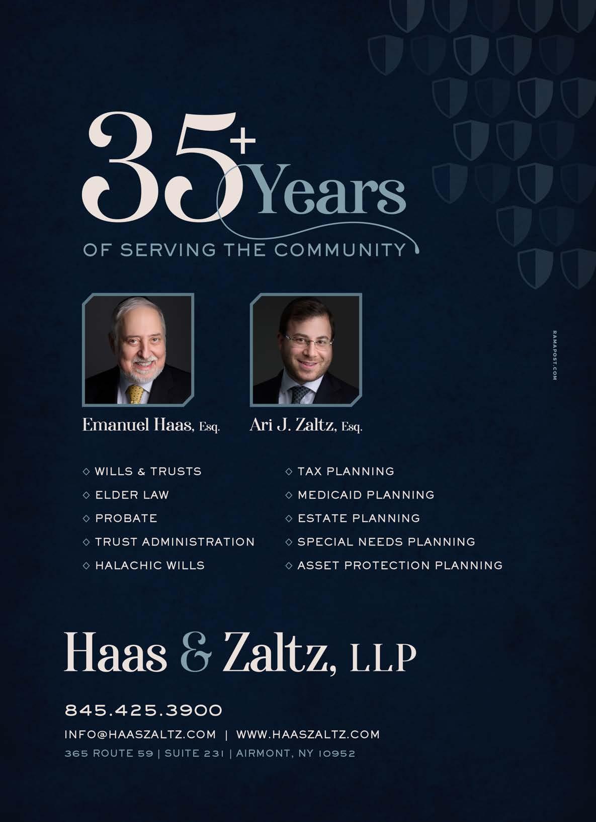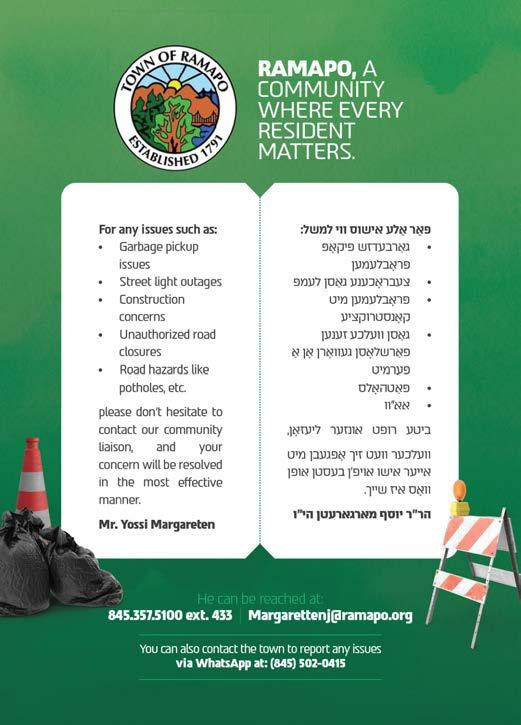 MONSEY, NY WEATHER FORECAST THURSDAY 55°/43° 80% FRIDAY 57°/43° 69% MONDAY 62°/43° 0% SHABBOS 63°/48° 10% TUESDAY 62°/46° 60% SUNDAY 69°/51° 5% WEDNESDAY 64°/47° 25% The Everest Equity Company, Inc. Registered Mortgage Broker New York State Department of Financial Services. Mortgage Broker Licensed by the New Jersey Department of Banking and Insurance. Licensed Mortgage Broker CT, PA, FL and NC Banking Departments. Loans arranged through third party providers. Company NMLS ID 12484 8 4 5 3 5 7 6 9 0 0 • n f o @ e v e r e s t e q u t y c o m • e v e r e s t e q u t y c o m 2 E X E C U T V E B L V D S U T E 2 0 1 • S U F F E R N , N Y 1 0 9 0 1 136 www.themonseyview.com 845.600.8484 The Monsey View May 3, 2023