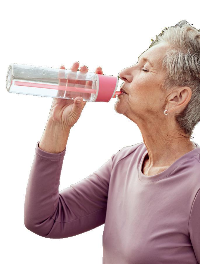 Staying hydrated is important for good health. It is common for older people to not feel thirsty and become dehydrated. Signs of dehydration include loss of concentration and alertness, headaches and constipation.