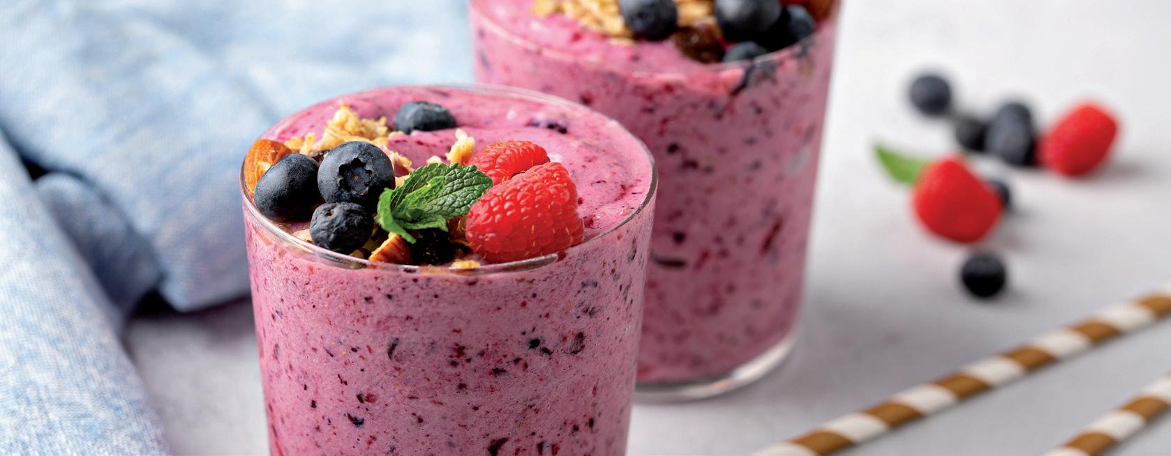 • Smoothie: 150 mls Greek-style yogurt; 250 mls of milk; 140 g mixed berries For more recipe ideas, see pages 15-16.