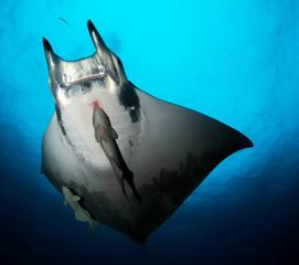 The Socorro Islands, more formally known as the Revillagigedo Archipelago, consists of four small islands: San Benedicto, Socorro, Roca Partida and Clarion. Only accessible by liveaboard, these waters are famous for up close and personal encounters with giant Pacific manta rays, wild bottlenose dolphins, whale sharks and humpback whales who come here to breed. Up to seven species of shark also visit these waters, including schooling hammerheads, Galapagos and silky sharks. Socorro is best suited to more experienced divers.