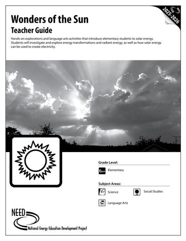 Hands-on explorations and language arts activities that introduce elementary students to solar energy. Students will investigate and explore energy transformations and radiant energy, as well as how solar energy can be used to create electricity.