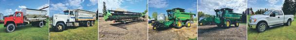 Full line of smaller but reliable machinery, tools and more. Dodge Laramie CC 1500, 5.7 litre, leather, loaded, sunroof, rear slide, new rear axle replaced recently, new brakes, rear bumper replaced, box rails, nice shape truck, 285 kms. One owner - 2008 Ford F-150, 4.6 litre engine, extended cab, 6ft box, 351 KMS, 235/75/R17 rubber, bed liner, runs well - 1979 Case 2290, w/ 23.1 X 34 rear tires, 11.00 x 16 fronts, Firestone tires, good starting unit, Ezee on Loader, 6 ft bucket, no welds, 540-1000 PTO, triple rear remote hyd, power shift, rebuilt in 2015, not much farm uses since - 1973 Dodge grain truck, 12 ft - 6 inch, metal box, 4 speed transmission w/ reverse, 8.25-205 tires, rear duals - 18 X 8 ft double axel trailer, 2-5/16 ball, farm use, steel frame, good rubber, solid deck needs a few boards - Versatile 875 4WD tractor, 3200 hrs, #053842, 20.8-38 tires, front and rear duals, 6 cylinder Cummings, Firestone tires, standard transmission, low and high range 315 HP, no PTO, 8-way hyd, plumbed for air seeder - White 271 model, 24 ft tandem disc, 20 inch front and 21 inch rear blades, double fold, no welds or breaks - HYD Rock Digger, Unity Sask-Built, Geres model, 9.5 x 15 tires, new cylinder and hoses - Yard works 19 HP B&S 42 inch mower, foward/reverse, 5-speed - Artisan 26 inch snowblower, 5 hp, B&S engine, running - JD 5103 tractor with Loader, 512 quick - attach, 13.6 x 28 rears, tires awesome shape, always indoors, 2073 hrs, #3029TPY23 - WR tidy tank, 100 gallon - tire changer, 1991, 1680 Combine - Excellent shape. Plus guest consignors including the following: Western Star tandem grain truck with a newly sanded and painted box, tarp, good rubber, 20 ft box, 14000 lb front axel, 15 speed transmission, three way lock, 32,000 hours, 507,000 kms, C10 Cat engine, must see. JD 750 Dozer, Recent work order work on tracks and sprockets, with blade. Selling off site - (5) 1650 bushel grain bins with good floors, south east of sale site 2 miles. Degelman rock picker, bale elevator, 22 ft disc. View the items at the farm July 11 from 10-7 pm and morning of the sale from 8 am till 10 am start. All items to be paid for after sale, cash or check or etransfer, bins to be removed before August 1.