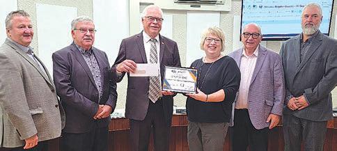 Vegreville Regional Museum President Peter Rubulak accepted a $10,000 cheque from the last members of the now disbanded Vegreville and District Historical Society: On hand were Paul Wilde, Georgina Tomyn, Walter Malarski, Marjorie Tuck, Peggy Tetreau, Daphne Havens, Ida Austin, Lillian Hohn, and Alma Kowaliuk.