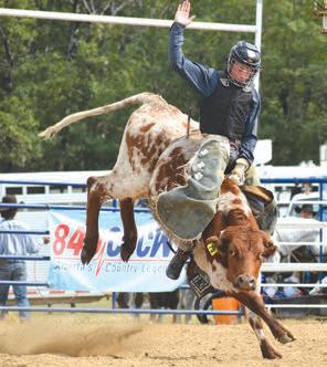 Smoky Lake contestant Matthew Montgomery competing in the Junior Steer Riding event. (Michelle Pinon/Photo)