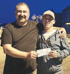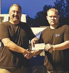 Sean Chilibecki presents a cheque to Kyle Lamarche. (Vegreville Speedway/Submitted Photo)