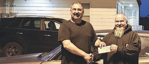 Sean Chilibecki presents a cheque to Andre Doiron. (Vegreville Speedway/ Submitted Photo)