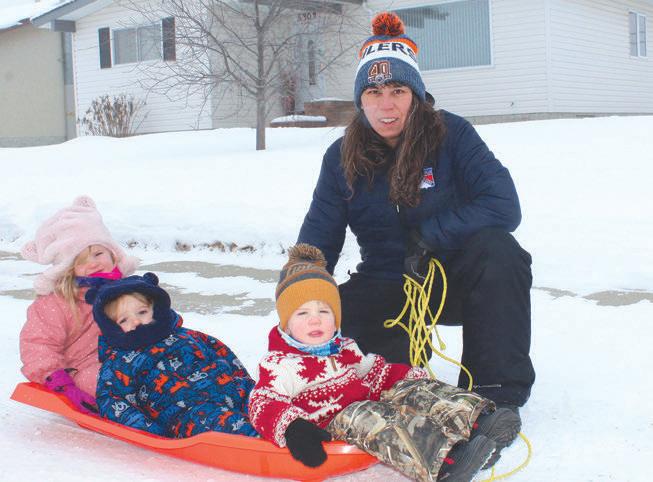 Caregiver Brandy Stefan was busy pulling Blake, Charley, and Jack on a fun ride in Vegreville on Jan. 11. She said the kids were very happy to be outside after the cold weather spell we had about three weeks ago. (Rosanne Fortier/Photo)