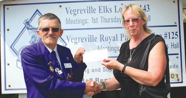 On June 16, Chairperson for Raffle Sales for AEFR and Exalted Ruler for Vegreville Elks Lodge No. 143 Paul Bosse presented Vegreville’s resident Val McLean with a cheque for $5,000 from her Third Prize Grand Prize win in the 2023 Alberta Elks Foundation Raffle (AEFR).