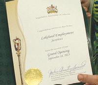 Homeniuk then presented a congratulatory scroll to Sydora for LES on behalf of Premier Smith, the Government of Alberta and herself as well as a book written in Ukrainian on how to write a resume in Canada.