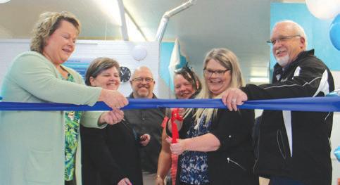 Mayor for Vegreville Tim MacPhee, Jackie Armstrong-Homeniuk and Marnie Sydora cut the ribbon, while Lindsay Sutherland, Roxane Bordyniuk and Brenda Sutherland look on. (Rosanne Fortier/Photo) Rosanne Fortier News Correspondent Some of the many local professionals at WJS who attended the event. (Rosanne Fortier/Photo)