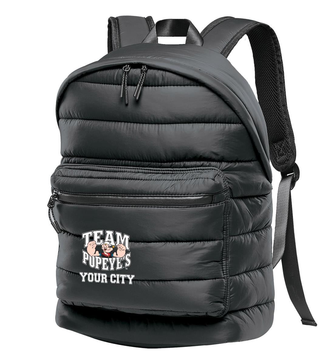 Contrast heat transfer Swoosh logo on front panel and shoulder strap handle