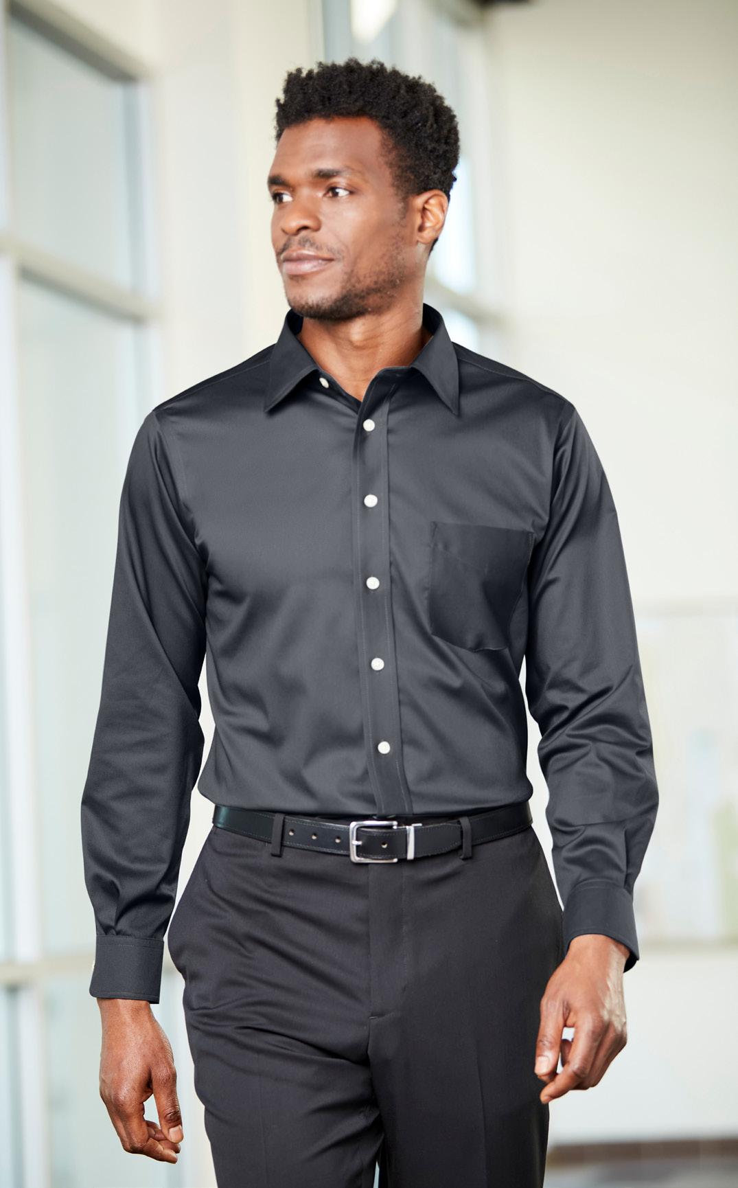 Shirt finishing that resists wrinkles and holds shape.