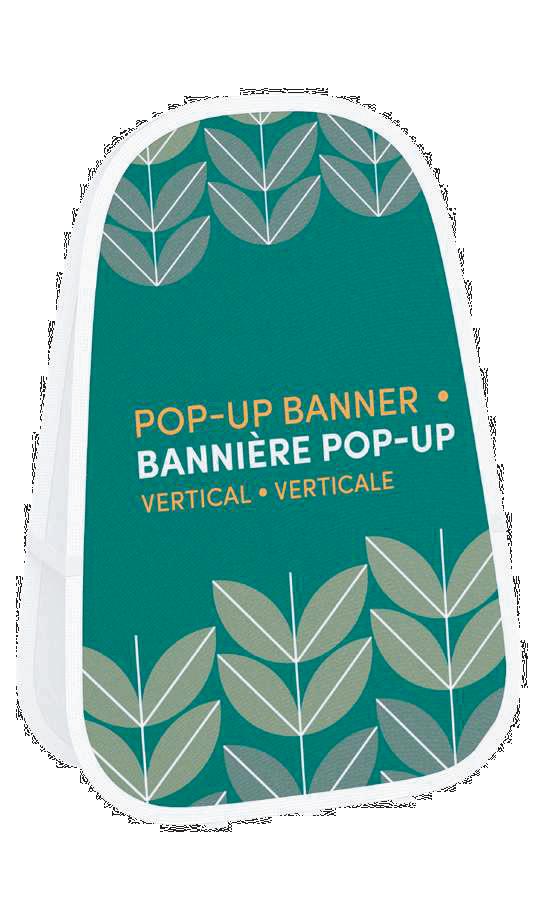 1 or 2-sided printed banner, aluminum frame (shape options below) and carrying bag