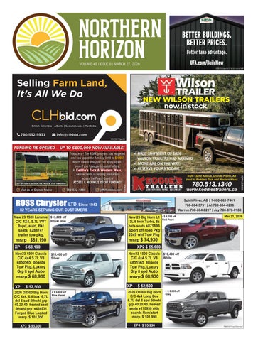 The Northern Horizon is an agriculturally based community newspaper that has been distributed free of charge to North-Western Alberta and North-Eastern BC since 1977. It delivers the area's best combination of agricultural and community news, along with grain, forage, and cattle market bulletins and reports. The Northern Horizon is published bi-weekly and is distributed by a combination of Canada Post and carrier drop-offs to area retail outlets with all readers receiving their copies by Tuesday the week following publication.