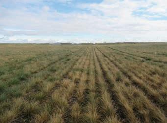 Figure1.Stressedcommercialfield of creepingred fescuegrowingnear SilverValleyABonOctober17,2023,wherelar valfeedingdamageto roots wasobser vedandmultiplespecies of insect lar vaewereretrieved. Photo:AAFC-Beaverlodge-S.Dufton.