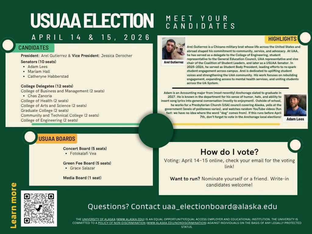 On March 27, UAA opened the UAA Dance in Concert 2026. The event was held in conjunction with Pulse Dance Company, Momentum Dance Collective and Alaska Dance Theatre. The show featured UAA dance stu-