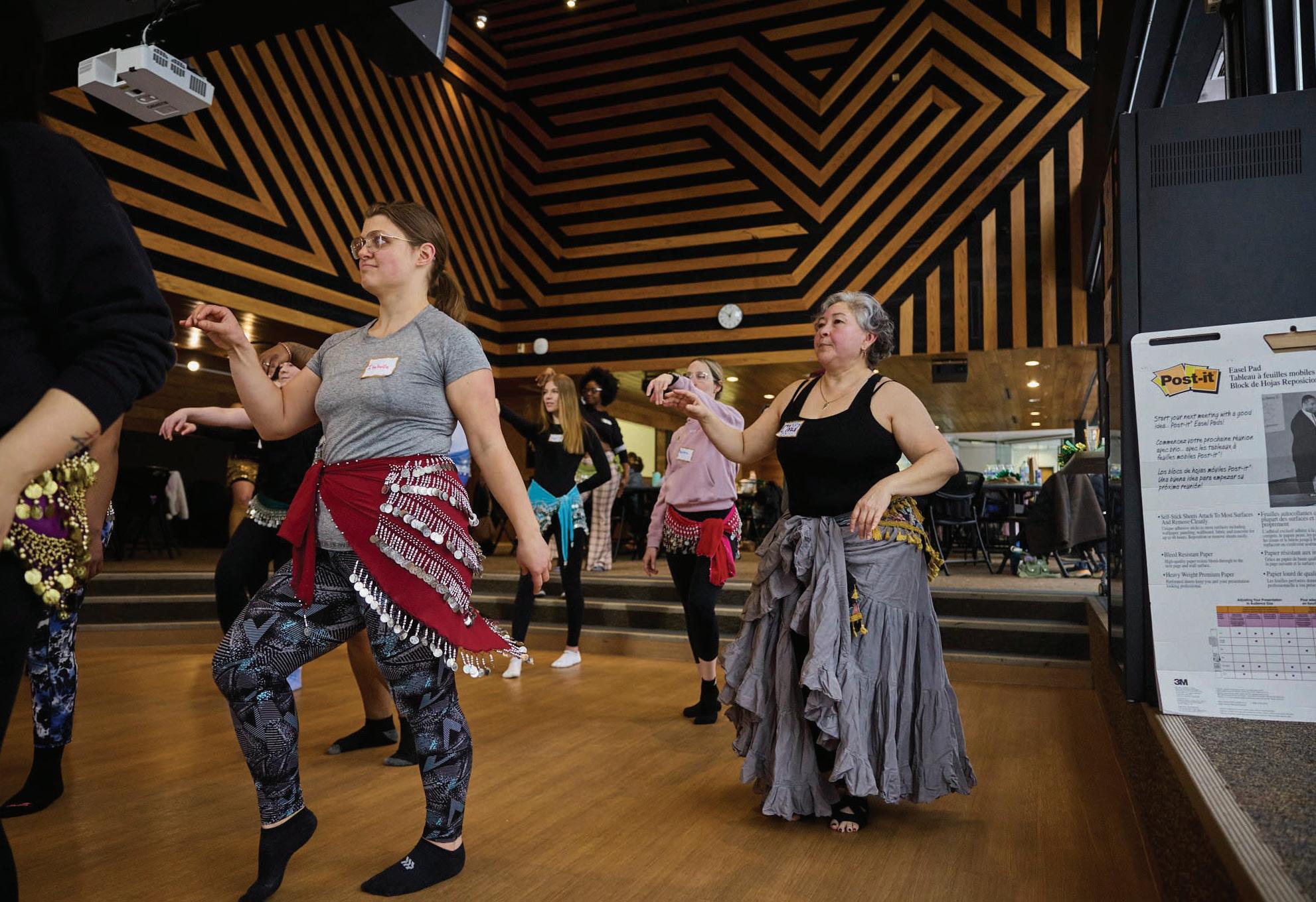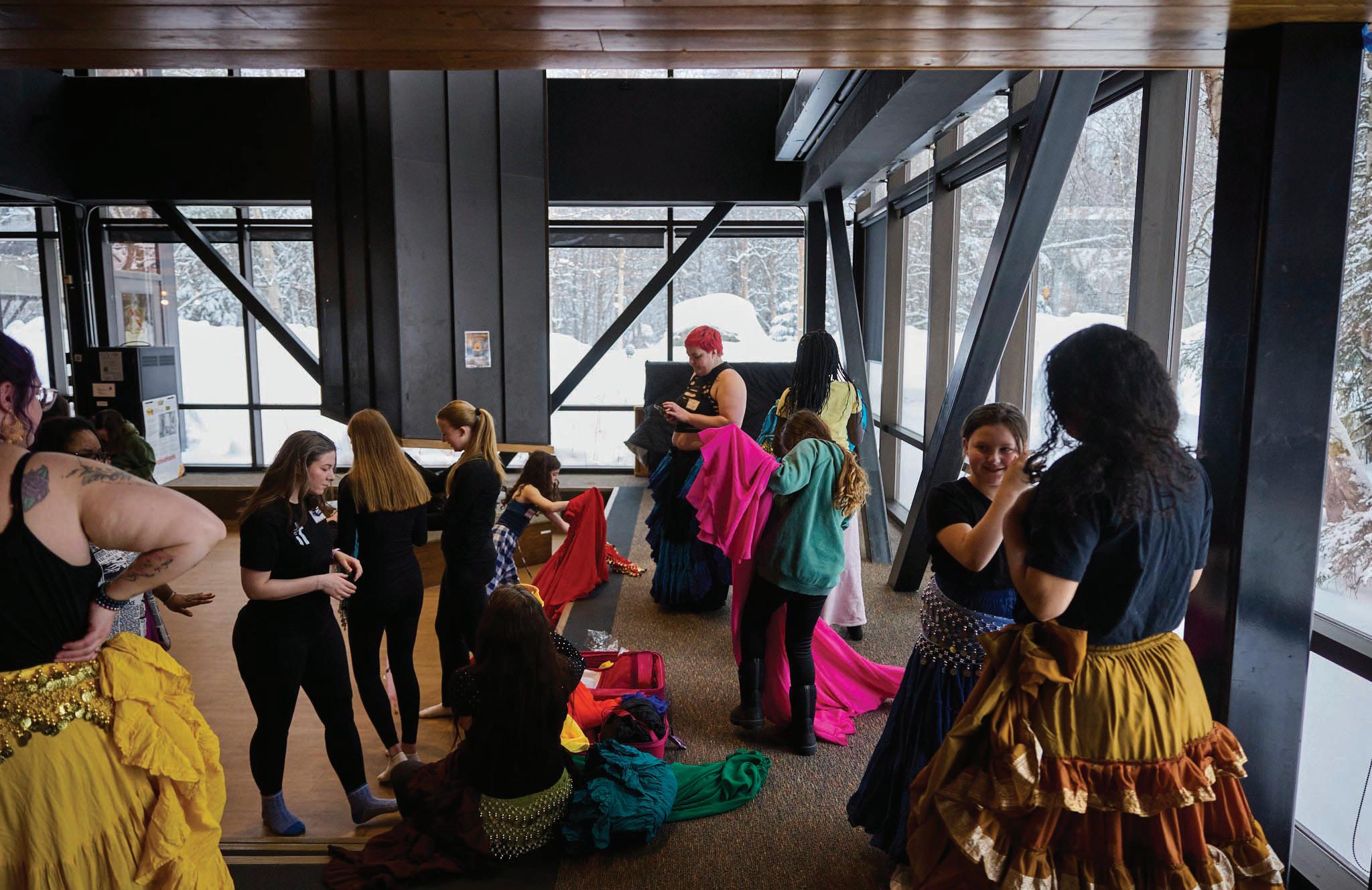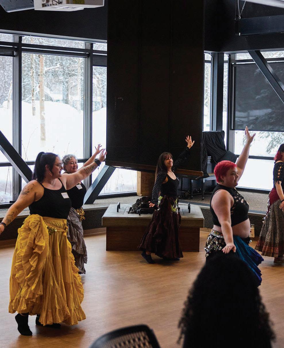 The UAA Cheer & Dance team invited Tundra Caravan from Fairbanks to lead a belly dance workshop in The Den at the Student Union on March 7 for students and the community to come out and learn. Despite the recent snowfall and slick roads, there was a full turnout for the highenergy event.