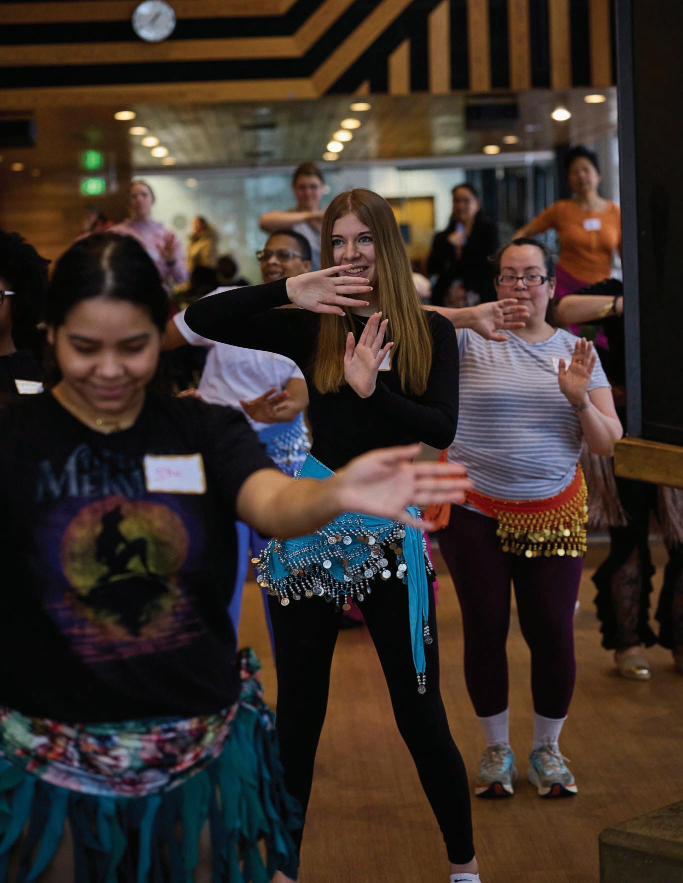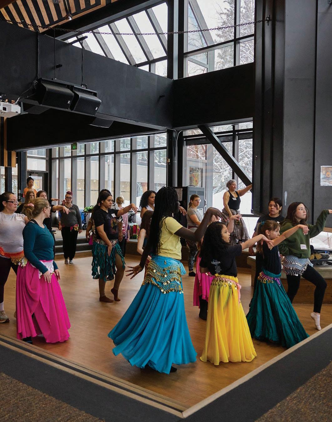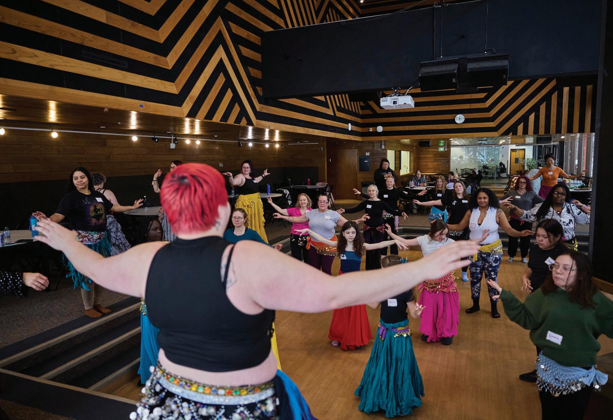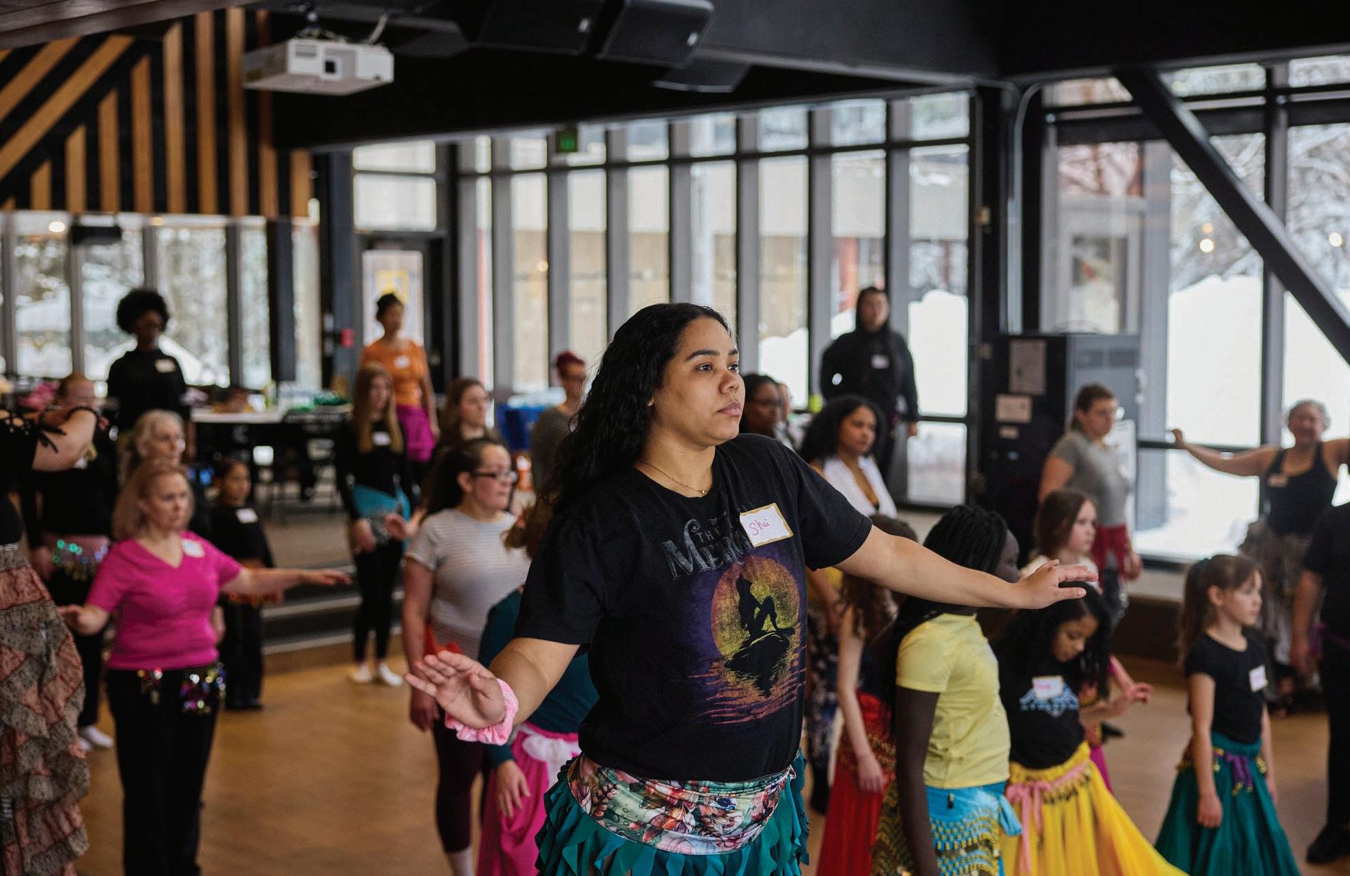 The UAA Cheer & Dance team invited Tundra Caravan from Fairbanks to lead a belly dance workshop in The Den at the Student Union on March 7 for students and the community to come out and learn. Despite the recent snowfall and slick roads, there was a full turnout for the highenergy event.