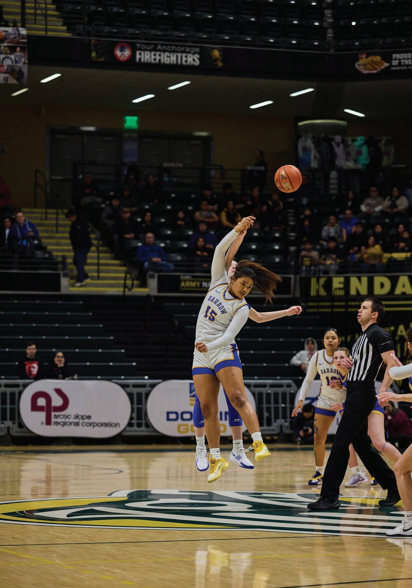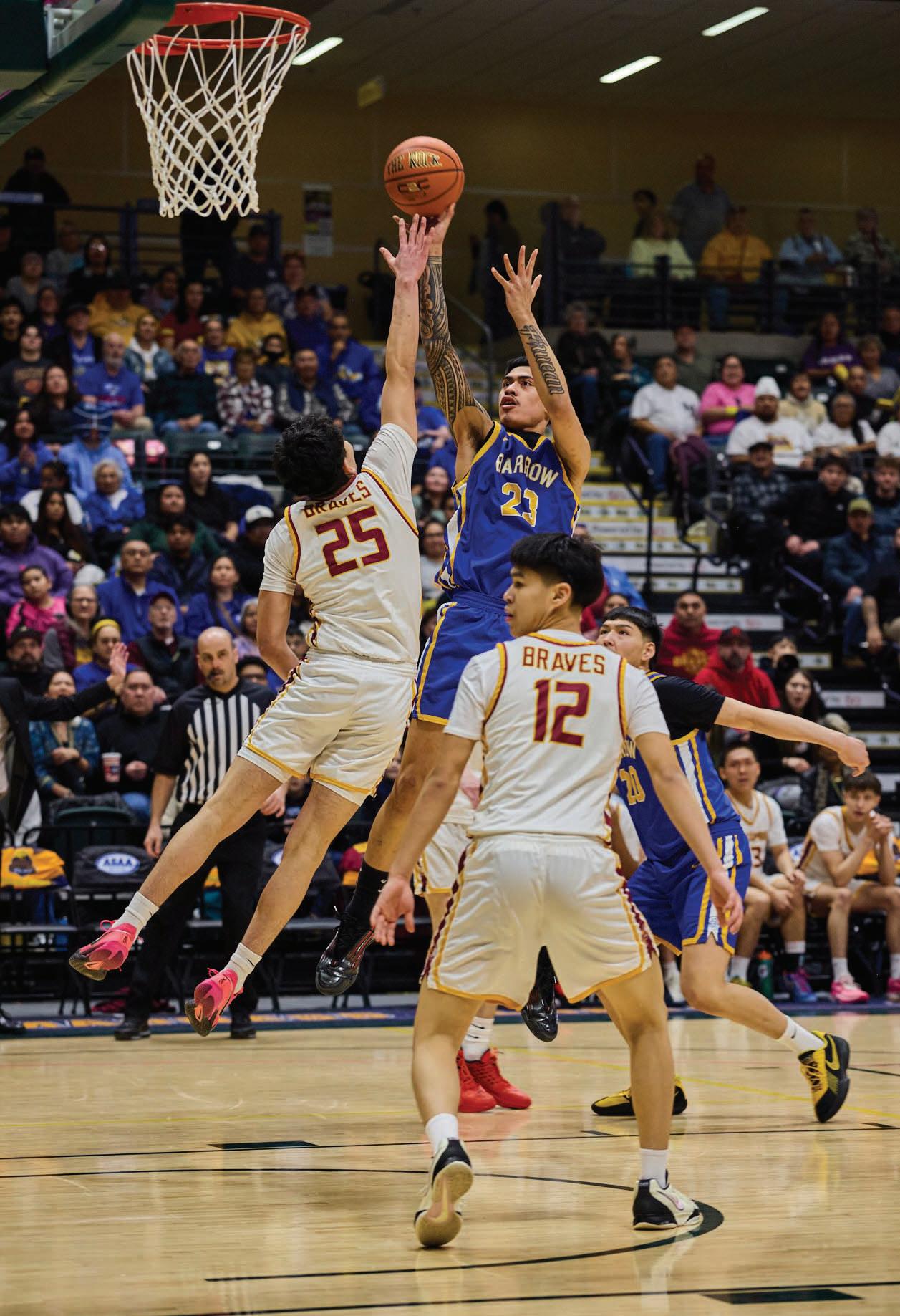 The Mt. Edgecumbe Braves boys team defeated the Barrow Whalers, 9897, in a hard fought game that ended up in triple overtime. Ending the third quarter down 60-51, the Braves rallied back in the fourth quarter managing to tie the game and force overtime. The Whalers and Braves traded points throughout the second
