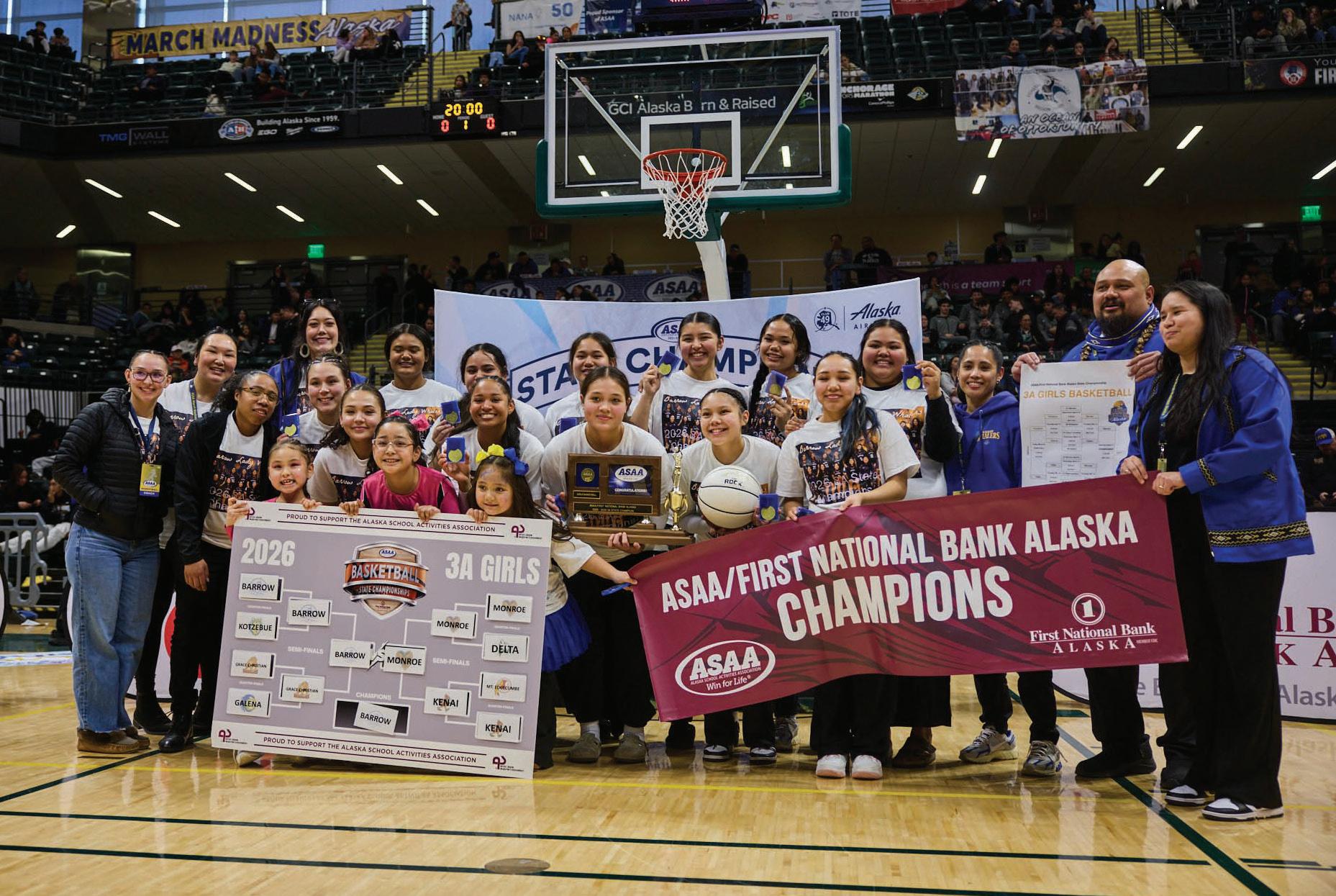 The Barrow Whalers girls basketball team defeated the Monroe Catholic Rams, 56-49, to secure the state 3A basketball championship for the 2025-26 season. This matchup concluded four days of playoffs at the Alas-