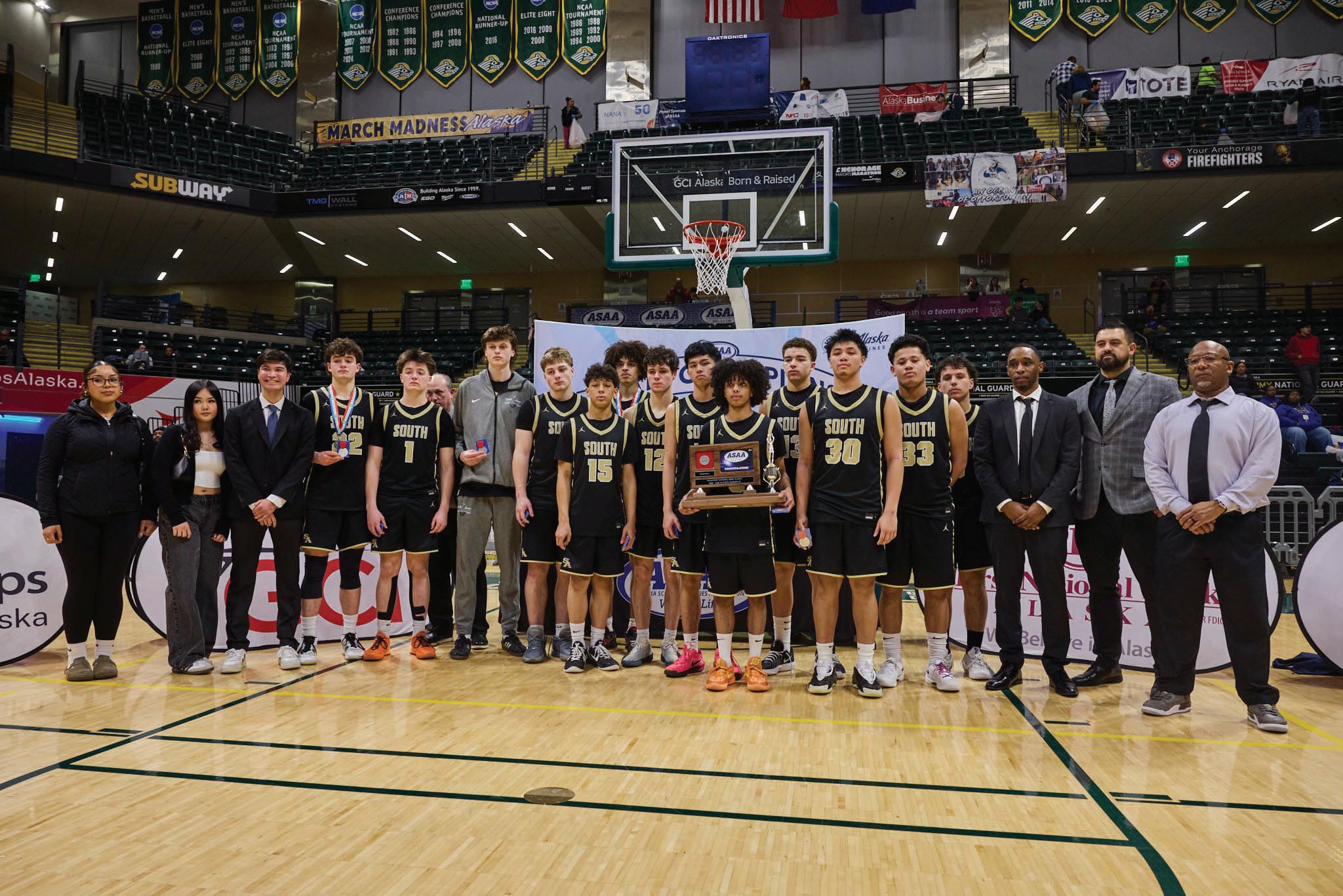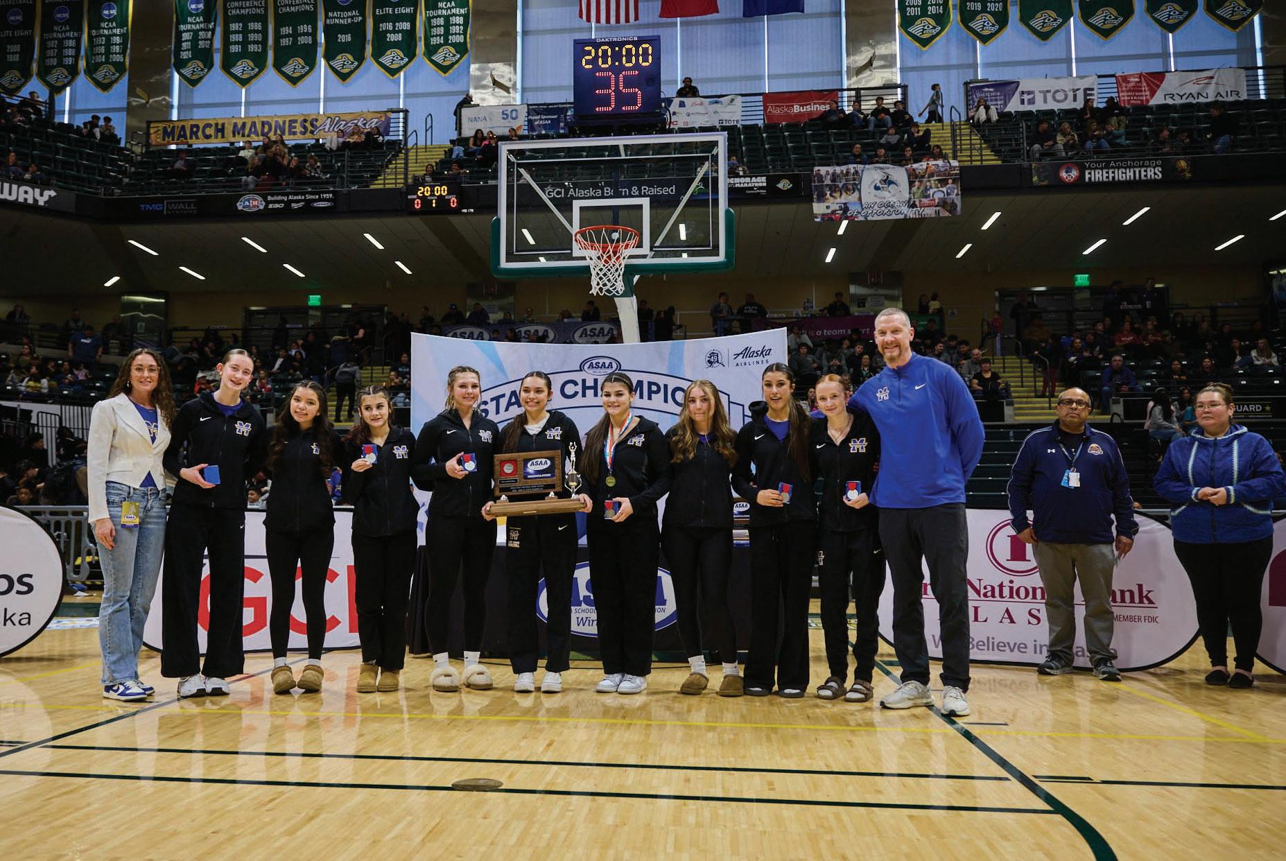 of a large crowd, both schools had large fan bases supporting them loudly. This matchup ended the four day ASAA March Madness event at the Alaska Airlines Center where 3A and 4A teams from all over Alaska competed for the state title.