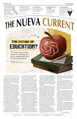 The official student newspaper of The Nueva School. Produced by students in the Upper School journalism class. Founded in 2017, The Nueva Current is a two-time National Scholastic Press Association (NSPA) Pacemaker Award winner (2022, 2024) and three-time Pacemaker Finalist (2020, 2022, 2023). The newspaper has twice received an All-American distinction in the critique and is a two-time Columbia Scholastic Press Association Gold Crown recipient (2023, 2024). Printed three times a semester, the newspaper is led by a student editor-in-chief and an editorial leadership team, and the staff works on all aspects of the newspaper, including story development, writing and reporting, layout and graphic design, and photography.