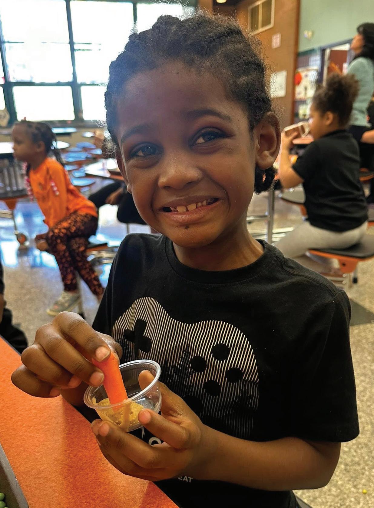To encourage our younger students to try new foods, we created the Wellness Wednesday program. Schools designate a special table in the cafeteria where there’s a new featured recipe. It could be foods that are familiar but in a new combination, or something they’ve never tried before. Each recipe is carefully crafted by our chefs and features colorful vegetables, fruits, legumes, and seasonings. Even the choosiest eaters are eager to sample these exciting new dishes.