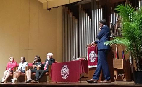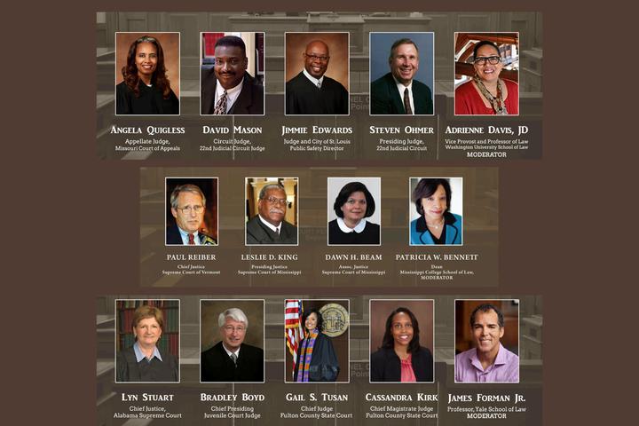 Yale Law Professor, James Forman, moderates a panel of judges at Morehouse College’s King Center Seen here: then Chief Alabama State Chief Supreme Court Judge, Lynn Stewart, Georgia Superior Court Judge, Gail Tusan, Georgia Chief Magistrate Judge Cassandra Kirk, and then Presiding Fulton Country Juvenile Court Judge Bradley Boyd, 2017
