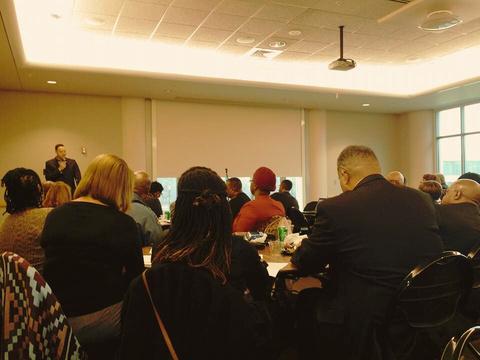 Former board member and former regional field organizer for the NAACP, Redditt Hudson speaking to a packed crowd of dignitaries and local non-profit heads at The Ethics Project’s Lunch with Judge Jimmie Edwards, who was then Presiding Judge of the St. Louis City Juvenile Court The standing room only crowd engaged with Judge Edwards, Hudson, Griffin, and then St Louis Prosecutor, Jennifer Joyce 2014