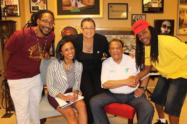 Ambassador Andrew Young, TEP founder & president, Christi Griffin interviewer, Victoria Bell and filmographer, Wesley Loxx and assistant, during filming for the documentary CHANGE 2014