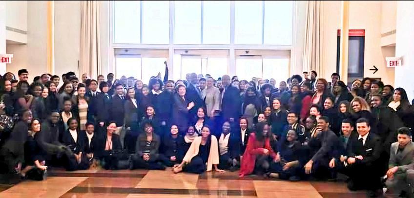 students from Roosevelt High School in St. Louis welcomed Andrew Young at a reception for the former US Ambassador to the United Nations the night before the first award ceremony at the Touhill Performing Arts Theater at the University of Missouri St Louis 2015