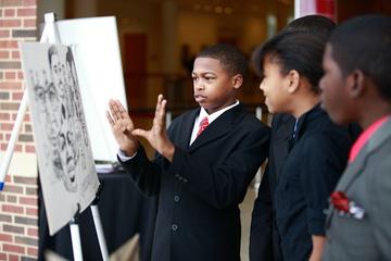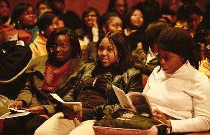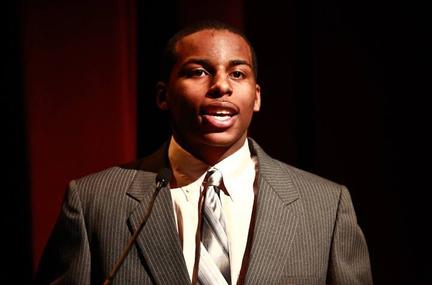 Student from Confluence Academy introducing former US Ambassador Andrew Young to an audience of nearly 1600 students at the Touhill Performing Arts Center in St Louis. As part of The Ethics Project youth leadership training, high school students are frequently provided the opportunity to participate in leadership roles 2010