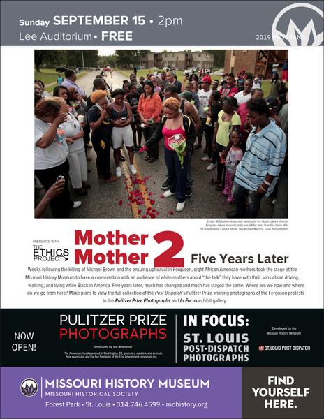The second Mother 2 Mother conversation held in conjunction with the Missouri History Museum evolved from extensive comments made by the panel of Mothers during the first scheduled event The strong desire for more interaction resulted in this and more such events concluding on the 10 anniversary of Michael Brown’s killing 2015 th