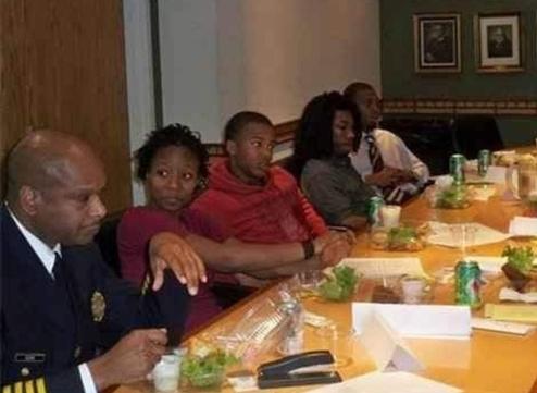 One of more than 200 community leaders who volunteered to work with youth during ten years of youth summits is then St Louis City Chief of Police, Dan Isom seen here having lunch with members of the Student Leadership Corp during a summit planning meeting at the Urban League of Metropolitan St Louis 2010
