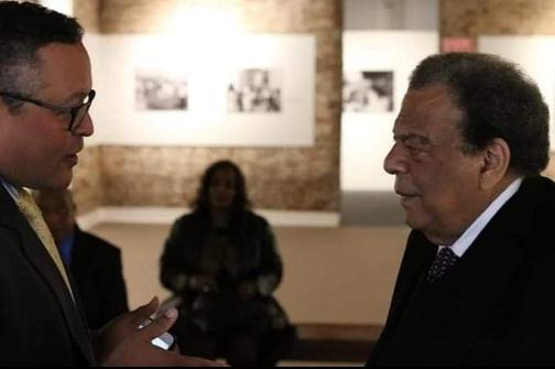 Former US Ambassador Andrew Young speaking with Kenneth Morris Jr , great-great-great-grandson of Frederick Douglass with the shadow of Lynne Jackson,great-great-granddaughter of Dred Scott looks on at the Robertson Museum in Jackson MS 2019 Photo credit Keith Griffin II