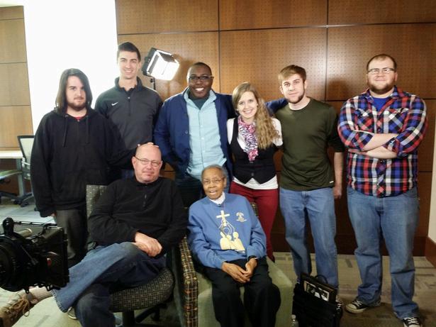 late Sr. Antona Ebo, one of The Sisters of Selma, and film crew from Webster University School of Communications during filming of the Ethics Project's documentary, CHANGE 2014
