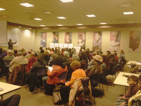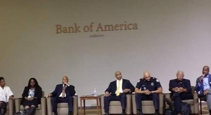 Town hall meeting at Schlafly Library to discuss housing and safety in St Louis with panelists from the STLMPD, real estate, non-profits, and the courts, 2016