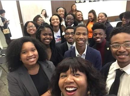 Participating NYS students posing with workshop leader, Keisa Laprell during the breakout sessions at The Two Mississippi Museums in Jackson, Mississippi. 2019
