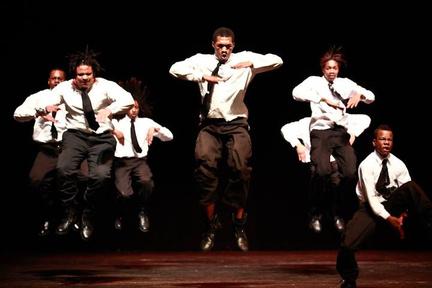 Gentlemen of Vision performing a scene from the movie Malcolm X at the first regional youth summit at the Touhill Performing Arts Center at the University of Missouri St Louis 2010 Photo credit Suzy Gorman